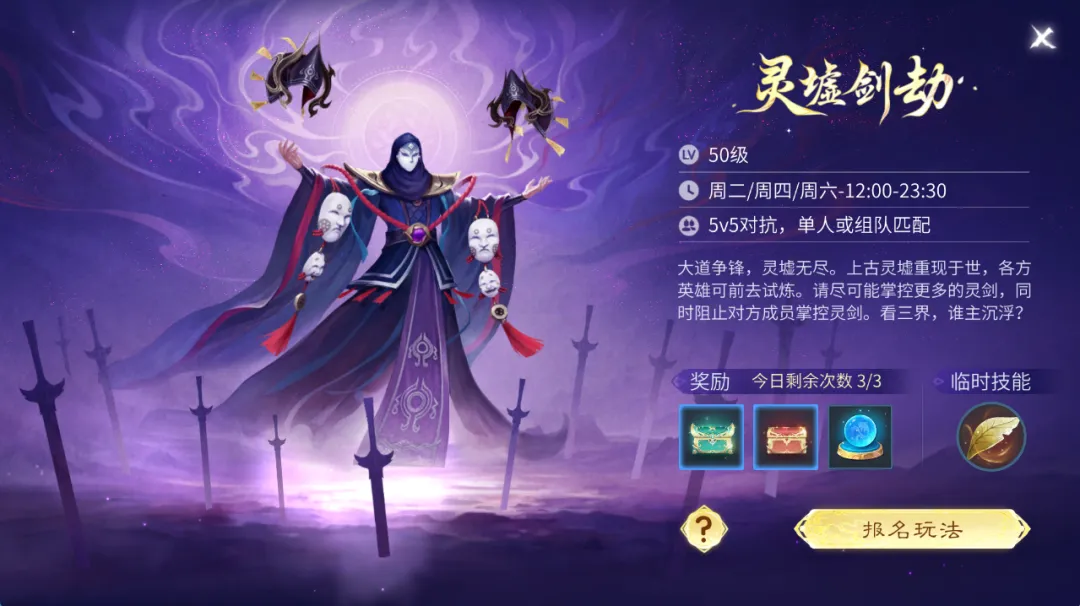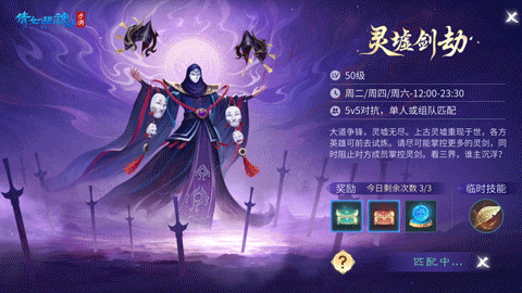 灵墟剑劫是5v5的阵营对抗模式活动,支持单人或组队匹配,下面将为大家详细讲解灵墟剑劫的玩法规则和奖励规则:
