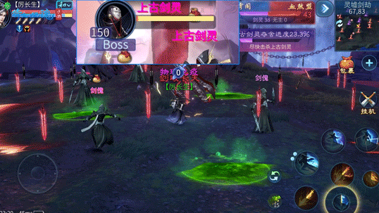 ⑤上古剑灵无差别攻击其他所有玩家,并不断掌控场上灵剑;优先掌控未被双方掌控的灵剑,随后再随机夺取双方掌控灵剑。